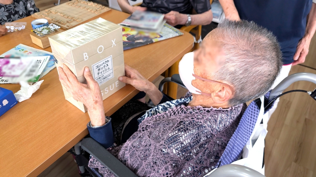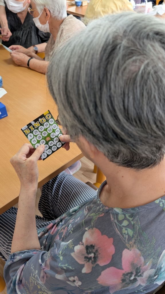 今日のデイサービスは、第二回ビンゴ大会を開催!!数字が呼ばれるたびにカードをじっと見つめる様子。景品を選ぶ楽しさも加わり、参加者の皆さんの笑顔が一層輝いていました。