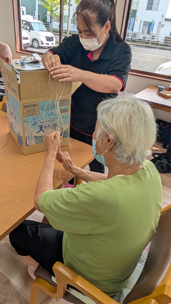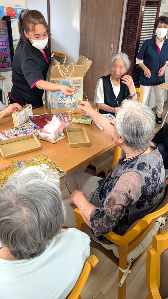 昔懐かしい“千本引き”を開催しました。ずらりと並んだ紐の中から、どれを引こうかと悩む姿もありました。引いた瞬間の『あっ!』という驚きや喜びの声が響いていました。みなさん笑顔で楽しんでくださり、次回はどんな仕掛けにしようか、今から楽しみです。