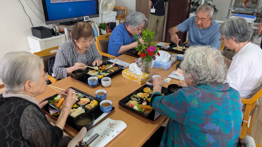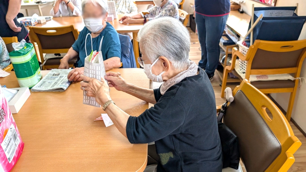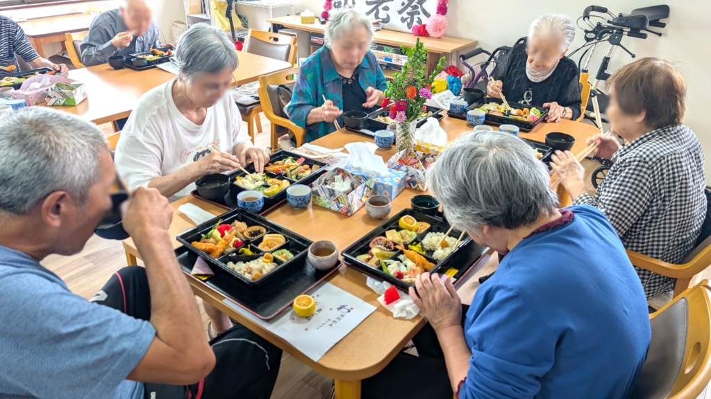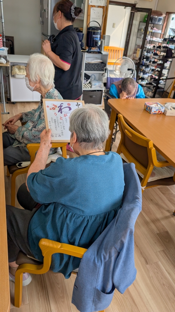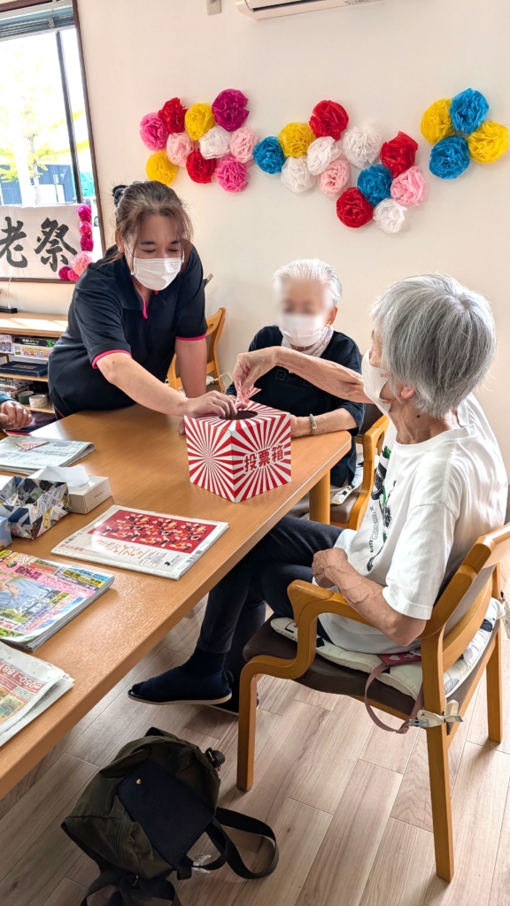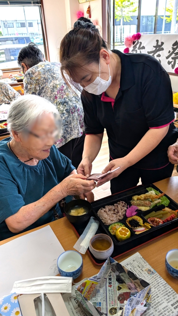 敬老祭を開催し、日頃の感謝と敬意を込めて、心温まるひとときを皆さまと過ごしました。午前中は、和特製のご膳を囲みながら、季節の味を楽しんでいただきました。午後からはゲームで笑い声が響き、色紙の贈呈では一人ひとりの笑顔が輝いていました。祝い年の方には凹版焼きの記念品を、デイサービス内での最高齢の方には花束を贈呈し、会場は拍手と感動に包まれました。これからも、皆さまの健やかな日々を願いながら、地域とともに歩んでまいります。