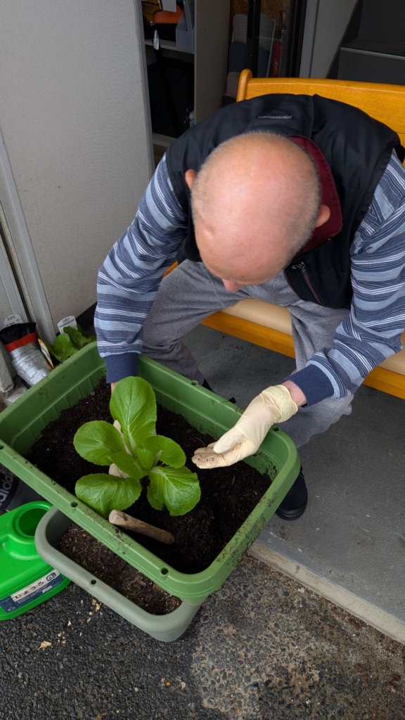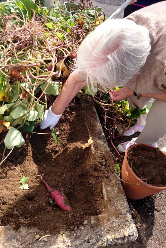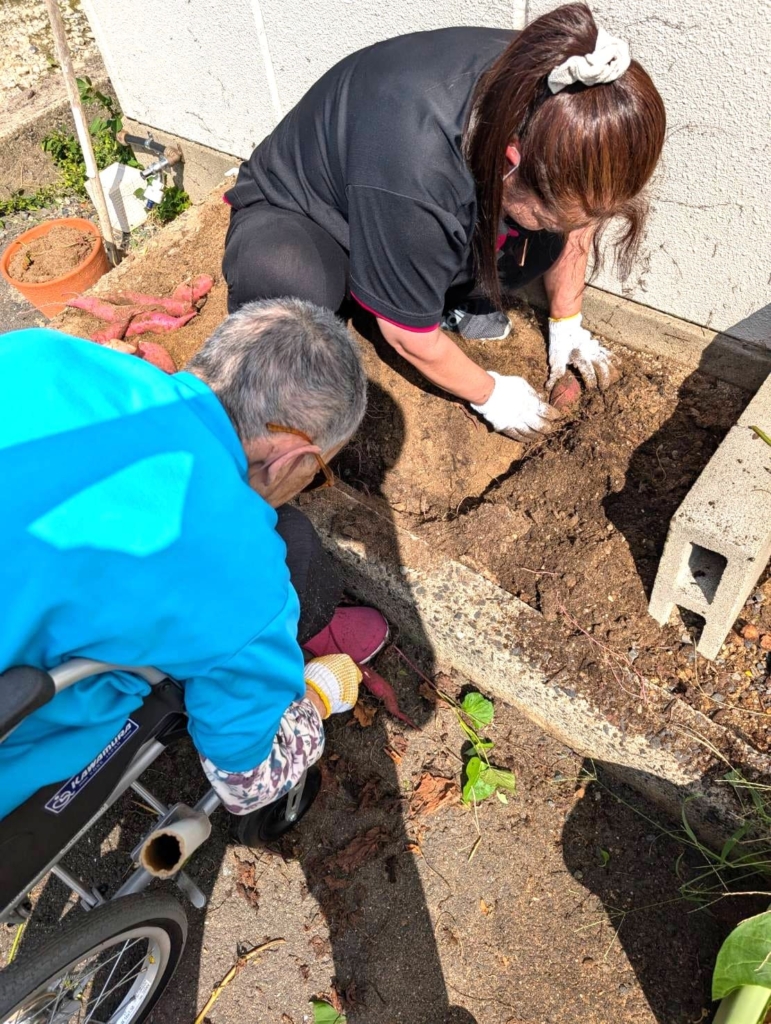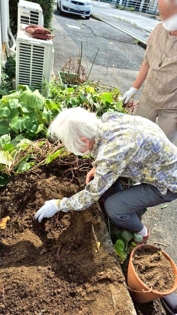 秋の深まりとともに、園芸活動を行いました。畑ではサツマイモが立派に育ち、皆さんで収穫しました。秋のレタスやキャベツの苗も丁寧に植えて頂き、畑は次の季節への準備が整いました。手を動かし、季節の移ろいを感じながら行って頂きました。