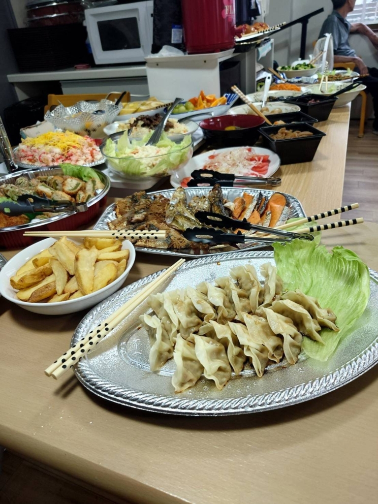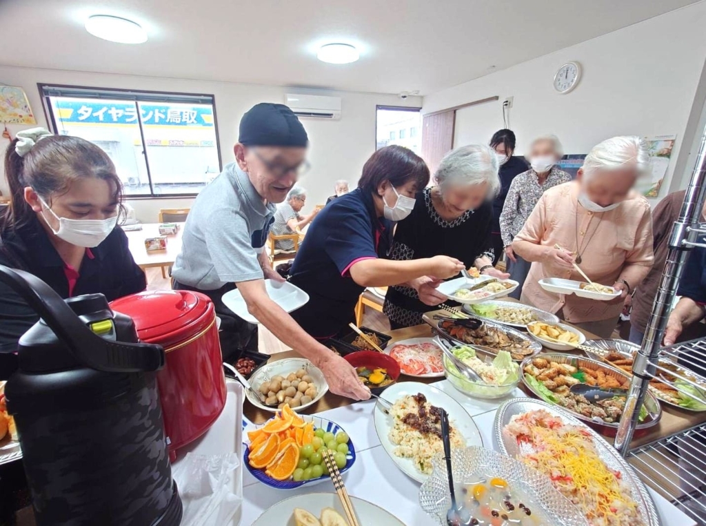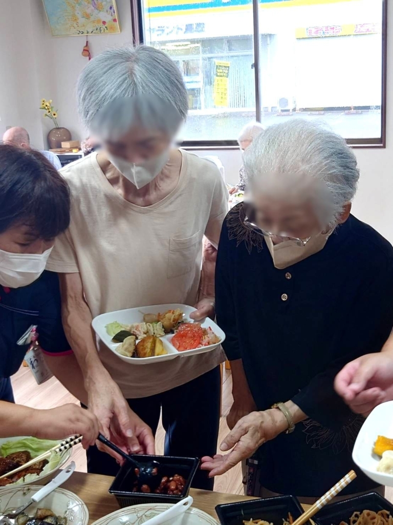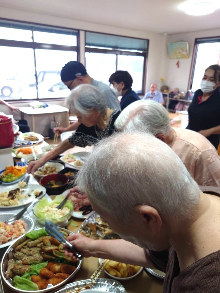 今日は、皆さんお待ちかねの“バイキング”を開催!!約30種類の料理が並ぶテーブルに、季節の食材を使ったメニューや、懐かしい味の一品もあり、会話も自然と弾みます。『美味しかった!』『またやってほしい!』という声が聞こえ、笑顔が広がる温かな昼食時間となりました。